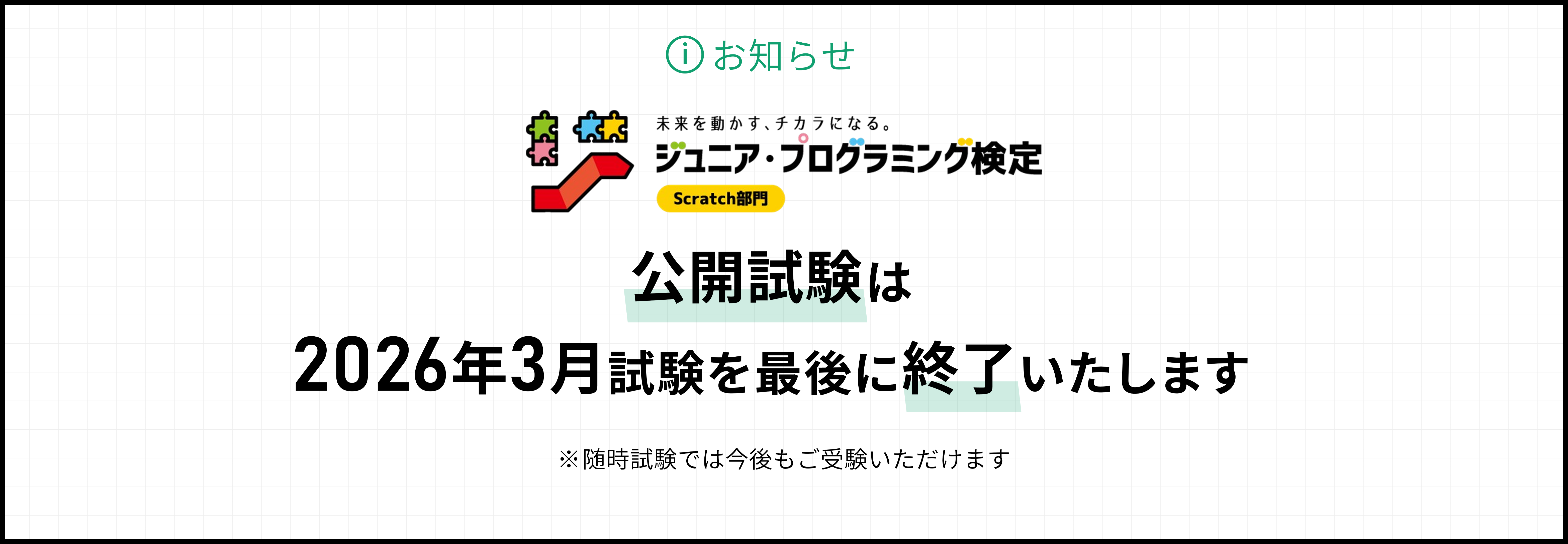 Scratchを使用したプログラミングスキルを測定し、その能力を証明・認定します。